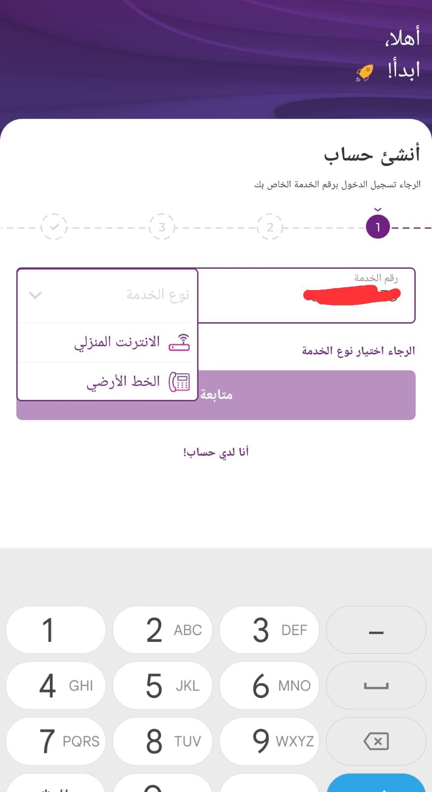 # بيتم اختيار نوع الخدمه الخط الارضى